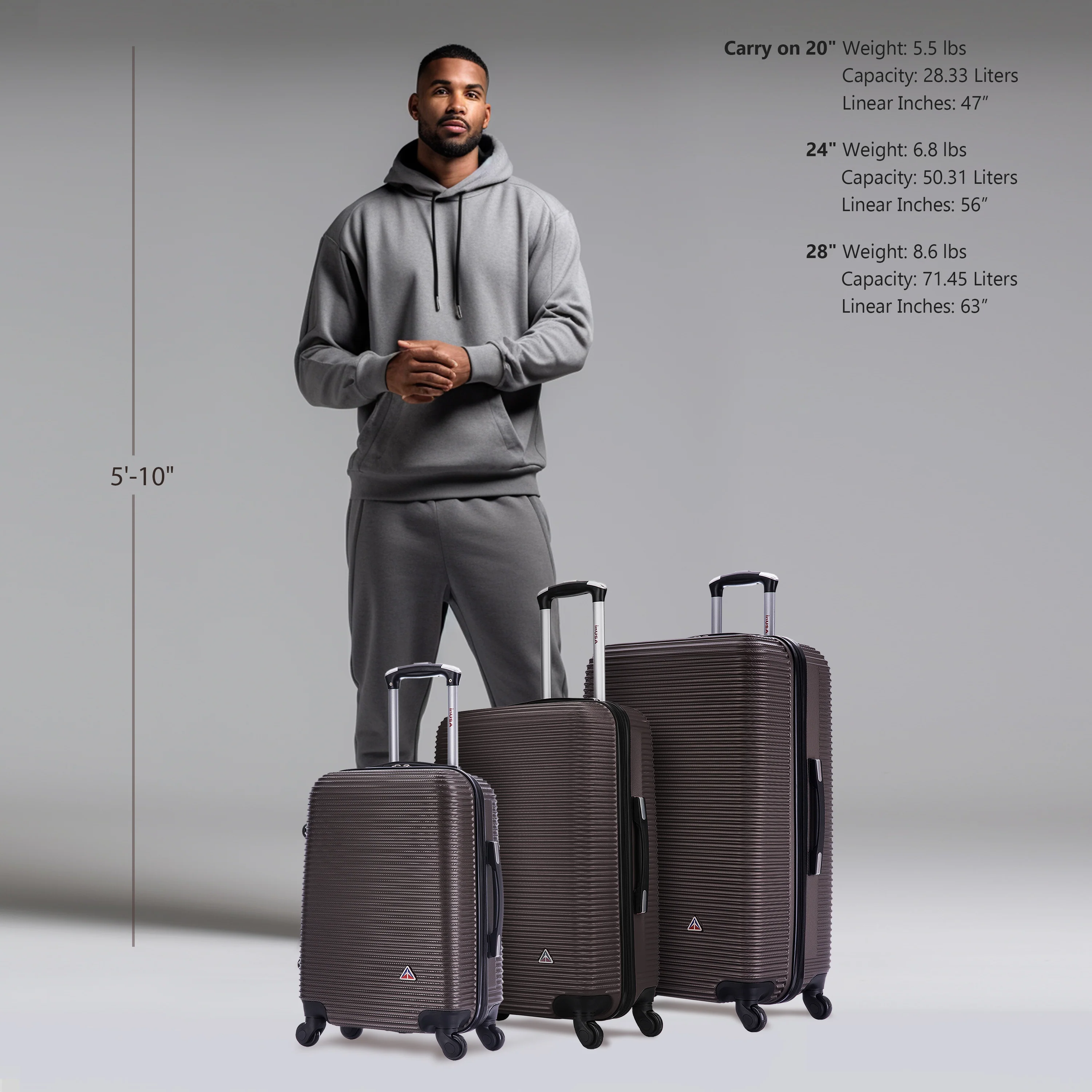 *Luggage dimensions don't include the wheels; add 2'' to the height to determine the overall height.